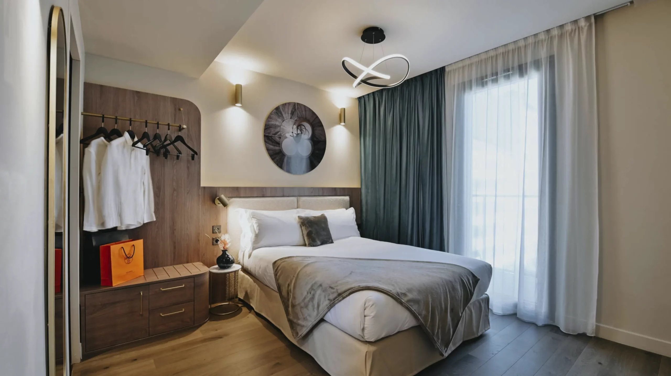 INTERVENTION : Impression de décoration murale pour les chambres d’un hôtel avec des tirages photos ronds.